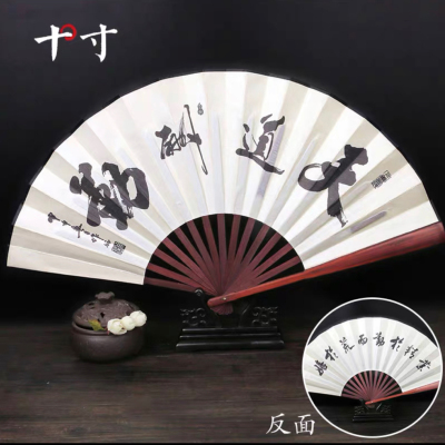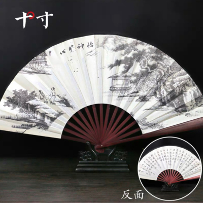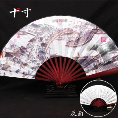 十寸男士红木绸面古风折扇