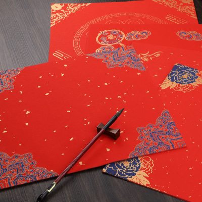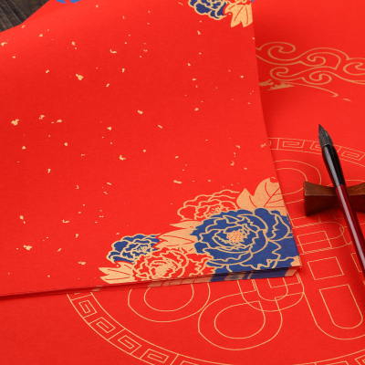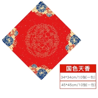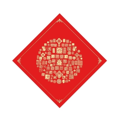 宫廷蜡染洒金福字纸斗方万年红