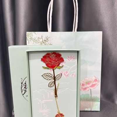 精品黄铜金属花神礼盒书签