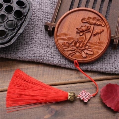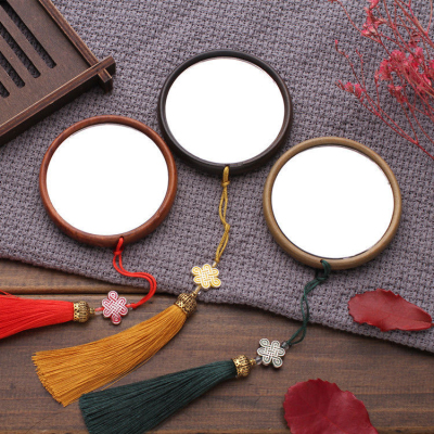 花梨木便携化妆镜流苏款