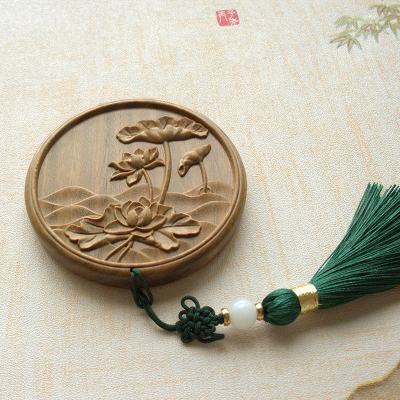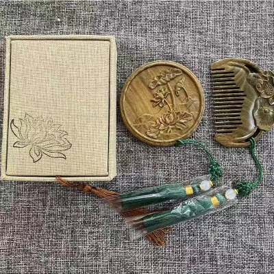 绿檀雕花镜礼品套装 镜子+梳子流苏款
