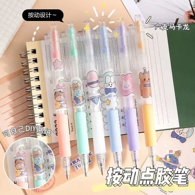 日系卡通笔形点点胶INS手账胶 6支